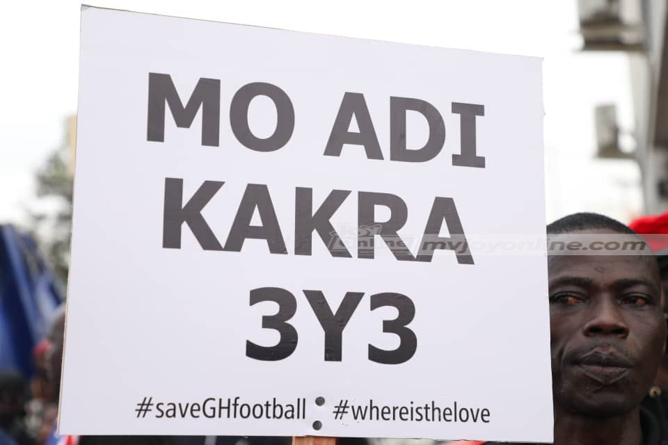 Protesters at the ‘SaveGhanaFootball' demonstration in Accra on Wednesday have put some interesting placards on display.