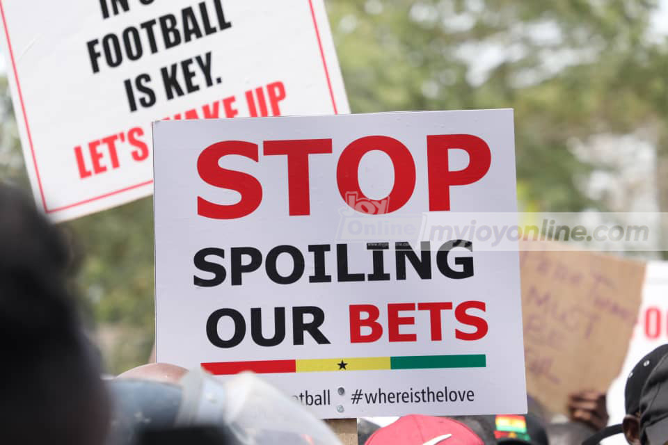 Among passionate calls for the Ghana Football Association to fix the mess in the country’s dying football industry are placards that had inscriptions such as, “stop spoiling our bets”, “we used be Brazilians of Africa, what happened?”