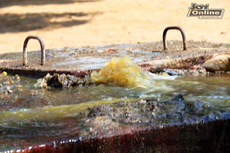 A visit to the community 4 neighborhood by myjoyonline.com revealed that the breakdown of the sewerage system has resulted in liquid waste flowing in front of homes.
