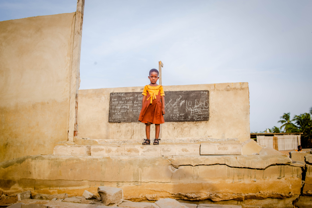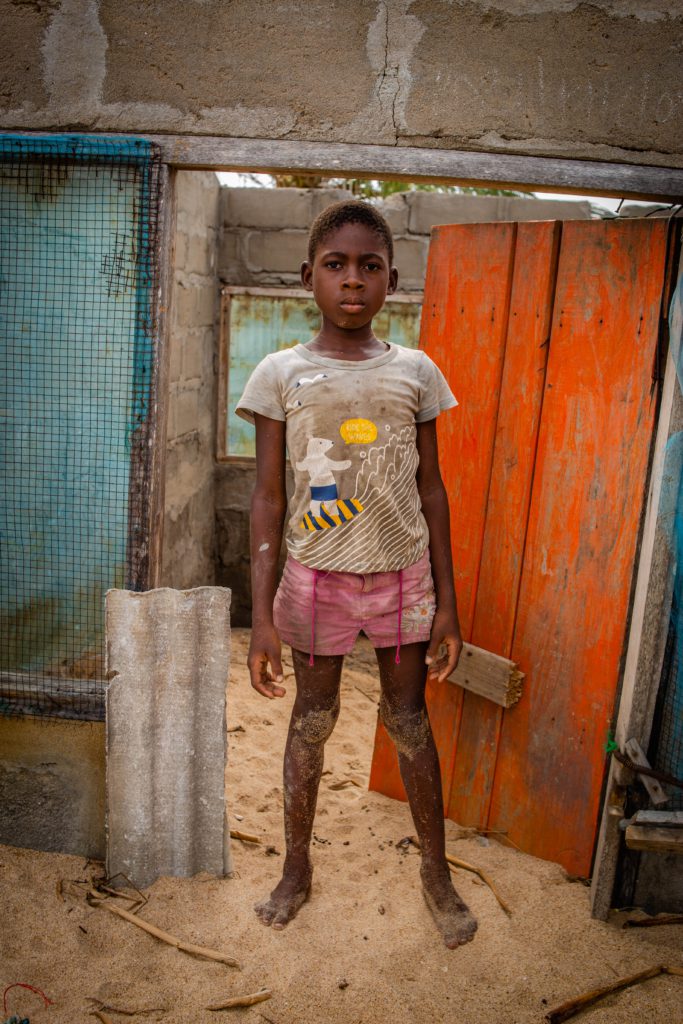 Grama Ahialsi, 6, lives with her mother in Agokedzi. This is the first time she had seen tidal waves come to the village. “I didn’t know what was happening. I thought everyone was going to die.”