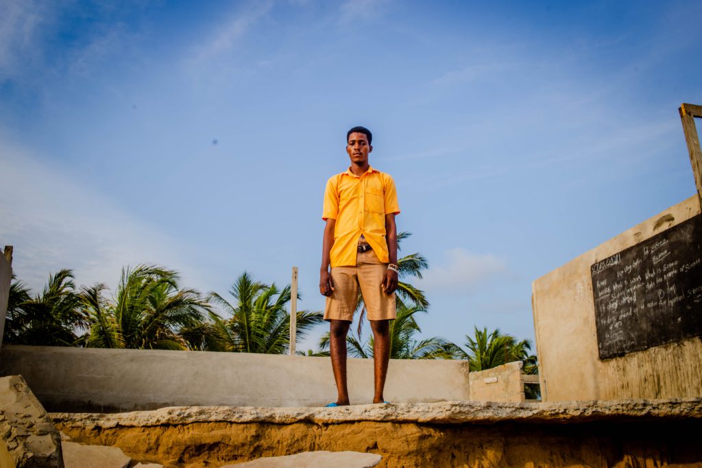 Edem Vumekpo, 5 years, attends the Agokedzi RC Primary School. He started school two years ago and hopes to become an engineer. The school was part of many structures that the sea waves took away.