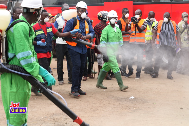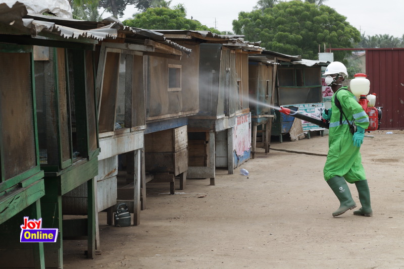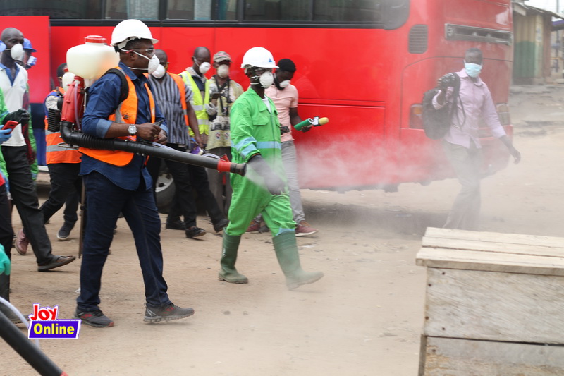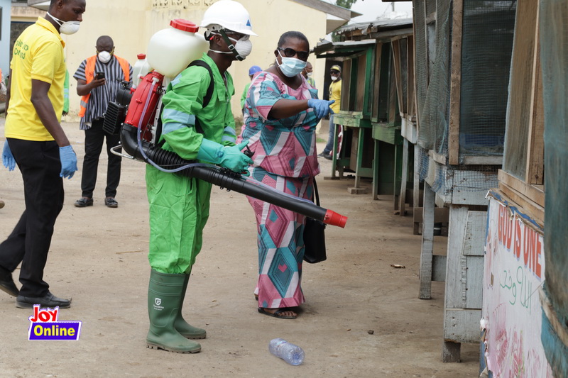 About 1,300 sprayers were deplored to various markets to disinfect the facilities with Chlorine Dioxide and Sodium Hypochloride as part of measures to prevent the spread of the coronavirus in Ghana.