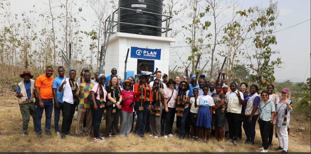 The visit culminated in a tour of Plan International Ghana-sponsored facilities, including a Centre and a Mechanized Water System in the community. The Drop-in centre, constructed in 2021 under the “Be Smart” Project, provides shelter and support services for various vulnerable populations, including adolescents. The centre offers a safe and welcoming environment where individuals can access essential resources and assistance. The Mechanized Water System, commissioned in October 2023 under the Integrated Package for Sustainable Development (IPADEV), serves more than half of the community, ensuring their access to clean and safe water.