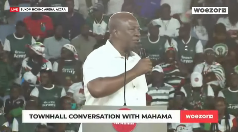 NDC flagbearer John Mahama spoke at a Townhall Meeting in Accra.