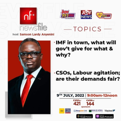 Today, on Newsfile, host, Samson Lardy Anyenini, and his panel will be discussing the implications of the government's IMF move and what lays ahead.