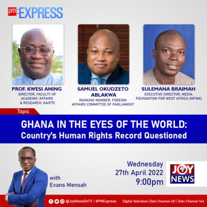 Tonight on PM Express, host, Evans Mensah, and his panel will be discussing Ghana's wavering human rights standards after an international report revealed that standards had fallen.