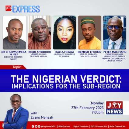 Joy News' PM Express tonight will discuss the implication of the outcome of Nigerian election for the sub-region.