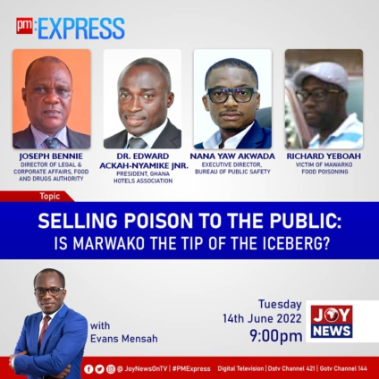 Tonight on PM Express, host, Evans Mensah, and his panel will be discussing the Marwako food poisoning incident amidst soaring concerns about the safety of fast food in Ghana.