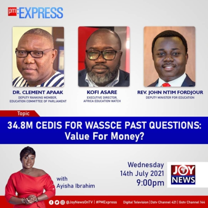 Joy News’ Ayisha Ibrahim hosts Deputy Ranking Member of Education Committee of Parliament, Dr Clement Apaak, Executive Director of Africa Education Watch, Kofi Asare and Deputy Minister for Education, Rev. John Ntim Fordjour on tonight’s edition of PM Express.