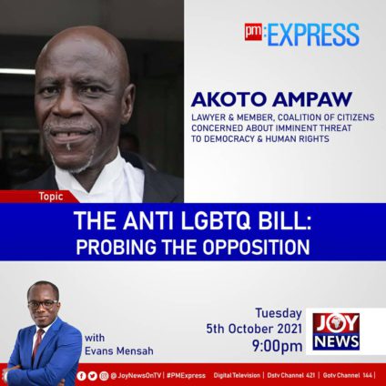 Tonight on PM Express, host, Evans Mensah interacted with Mr Akoto Ampaw to explain into details, the memorandum opposing the anti-LGBTQ+ bill currently before the House.