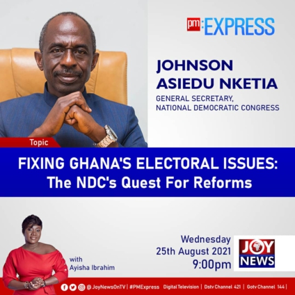 Tonight on PM Express, host, Aisha Ibrahim interacted with the party's General Secretary, Jonhson Asiedu Nketia to discuss the NDC's next steps in its quest for electoral reforms.