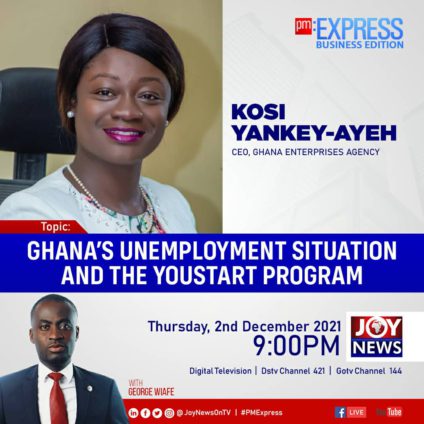 Therefore, JoyNews’ George Wiafe on the Business Edition of PM Express, engaged Chief Executive of Ghana Enterprises Agency, Kosi Yankey-Ayeh to ascertain how government’s ‘YouStart’ initiative will be able to address the issue of unemployment in the country.