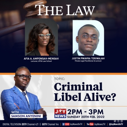 Today on JoyNews, The Law found out whether Criminal Libel; deliberate publication of defamatory lies which the publisher knows to be false, is still being applied in the country.