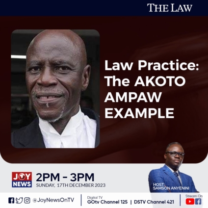 This Sunday’s edition of JoyNews' The Law hosted by JoyNews’ Samson Anyenini discussed the topic: “Law practice: The Akoto Ampaw example.”