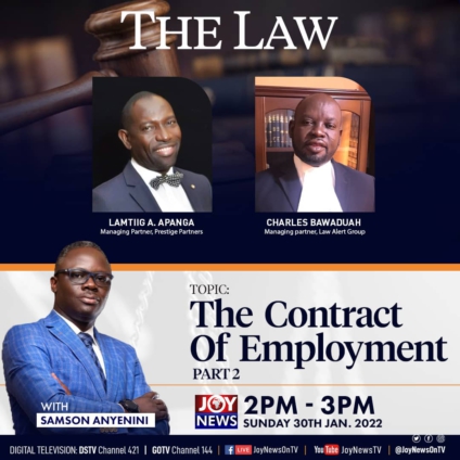 The legal light show on JoyNews, The Law, holds another discussion on what the Constitution says about the contract of employment.