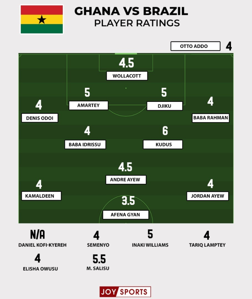 Playing as the lone pivot at some point, Iddrisu struggled defensively and his control when in possession was not the best against the Selecao.