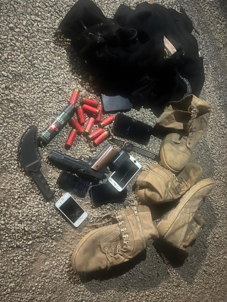 A number of items were retrieved from the suspects, including a pistol with two rounds of .32 ammunition, 11 BB cartridges, a “blantine,” pepper spray, desert boots, assorted mobile phones, and a black pullover.