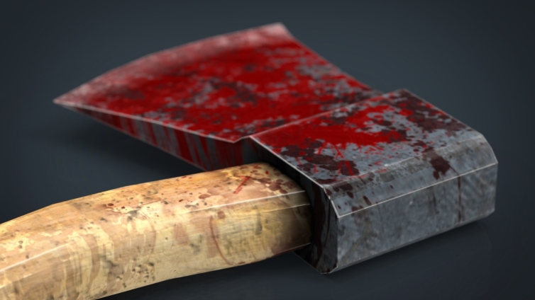 A crime scene management team recovered an axe and a club, both stained with blood, at the location.