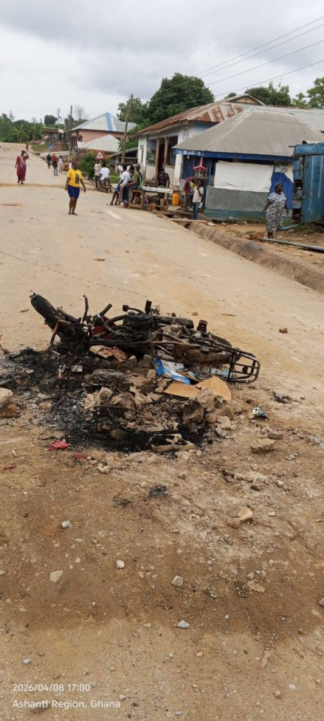 The Police indicated that upon arrival at Asisiriwa, officers found roadblocks made with lorry tyres and burnt motorbikes, while two male adults were discovered dead on the outskirts of the town with multiple cutlass wounds. The deceased were identified as Peterson Bonsu, also known as “Low Key,” aged about 23, and Kwaku Opoku, aged about 25.
