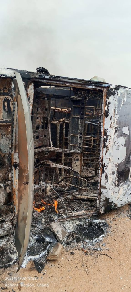 The bodies were conveyed to the Jachie-Pramso Government Hospital Mortuary for preservation and autopsy.A burnt Sprinter bus was also recorded at Brodekwano.