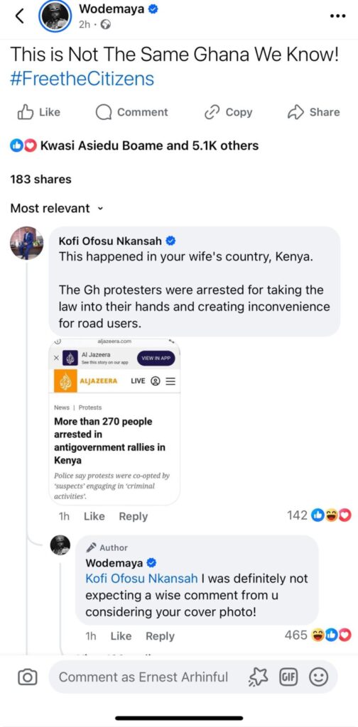 Popular Ghanaian YouTuber, Wodemaya, has found himself at the centre of controversy following a comment he made on Facebook criticising the incumbent government over the arrest and detention of some 39 protestors.