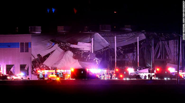 In Illinois, an Amazon warehouse was damaged in Edwardsville, which is 24 miles east of St. Louis, Missouri.