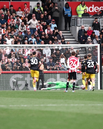 Fernandes was given the chance to level when Bees captain Nathan Collins dragged former Brentford forward Bryan Mbeumo back inside the area.
