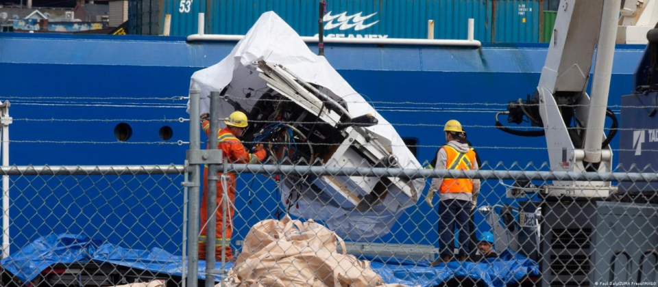 Pieces from the sub, which imploded on a deep dive to the Titanic, were unloaded in St John's, Canada, on Wednesday.
