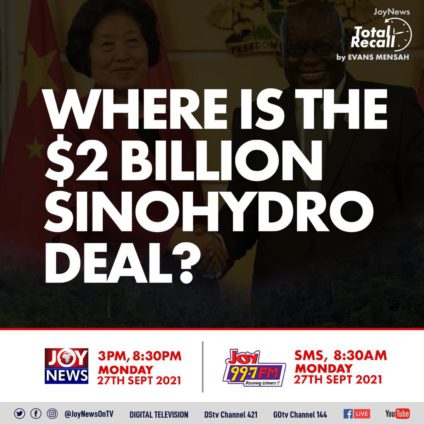 On Total Recall this morning, JoyNews asks, where is the $2 billion Sinohydro money meant to fix Ghana’s infrastructure needs?