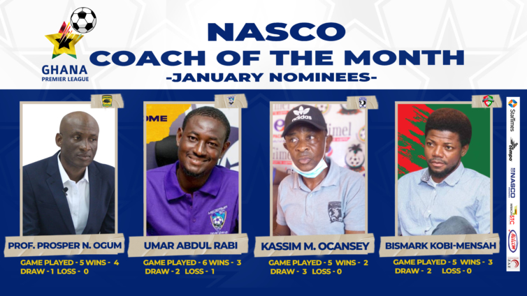 November’s winner Prosper Ogum Narteh, Umar Abdul Rabi of Medeama and Kassim Mingle of Bechem United and Bismark Kobby Mensah of Karela FC are all gunning for this month’s award.