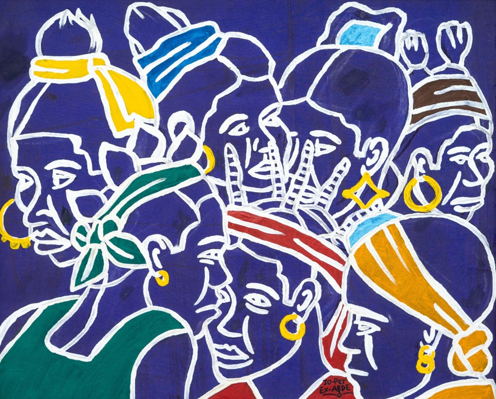 For the show, Abdallah presents paintings and mixed-media works depicting scenes, including psychiatric hospitals and ceremonial traditions, depicting Ghanaian cultural, political, and spiritual life.
