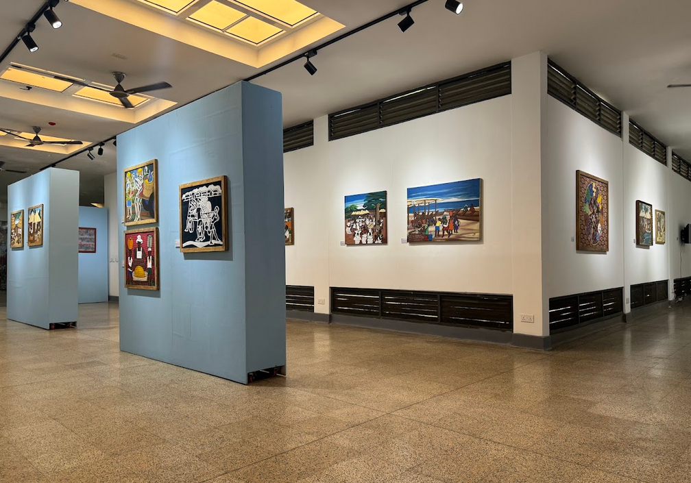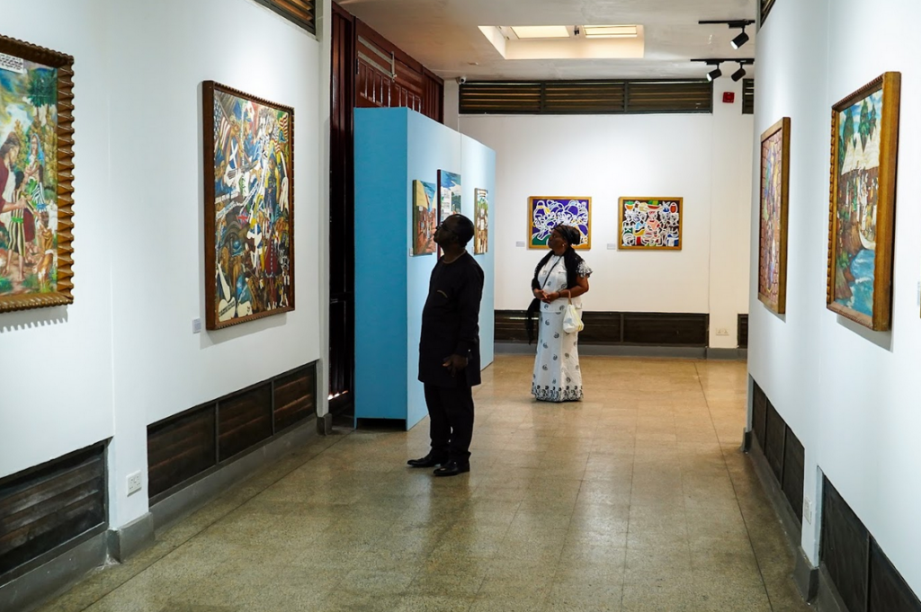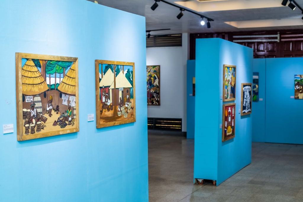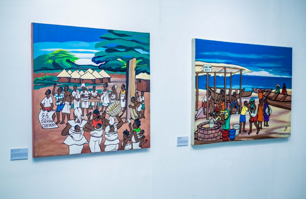 So when you enter the show, the Museum’s collection of artefacts and ancestral traditions leads straight into Jojo’s iconic paintings of “Ga’s First Awaking” and “Accra Psychiatric Hospital”. These paintings collectively tell stories of Ghana’s changing social fabric across traditional, colonial, and contemporary regimes: the Hospital as part of the society, and the society as part of the Hospital.
