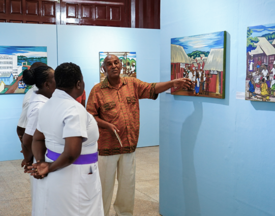 The Psychiatric Hospital has played a formative role in Jojo’s creative journey, and hospitals widely feature in his paintings. Doctors Ekremet and Quartey contributed writing on art and therapy to the exhibition catalogue; as did Dr. Enyin Bentum “Paakow” Annan, an art-lover and medical doctor who coincidentally started volunteering at the Psychiatric Hospital the week after he met Jojo.