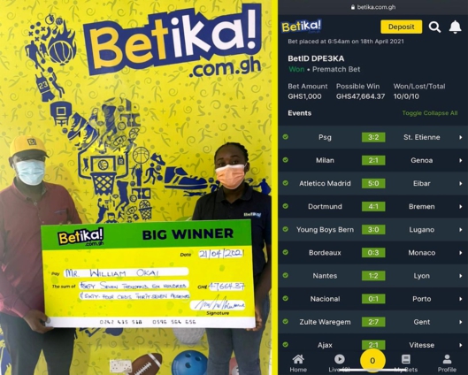 Betika, the fastest growing sports betting firm in Ghana, has fulfilled its obligation by presenting its latest winner William Okai, with ¢47,664.37 cash price.
