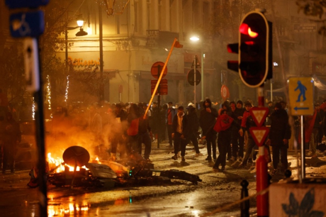 Police in the neighbouring Netherlands said violence erupted in the port city of Rotterdam, with riot officers attempting to break up a group of 500 football supporters who pelted police with fireworks and glass. Media reported unrest in the capital Amsterdam and The Hague.