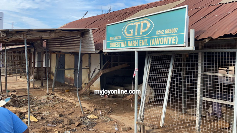 A resident of the palace told the GNA the flood water forced its way through a chain of stores bounding the yard, collapsing several and sweeping away varying goods including bales of cloth and beauty products.