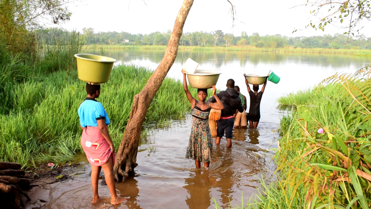 Angela Ayensu Ayele and her family travel to the bank of the dam on Saturdays to wash their clothing due to the unavailability of water.