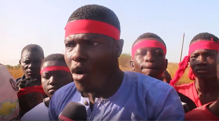 The residents who came out with red rags tied to their heads demonstrated against the use of what they called "sub-standard" building materials for the construction of roads.