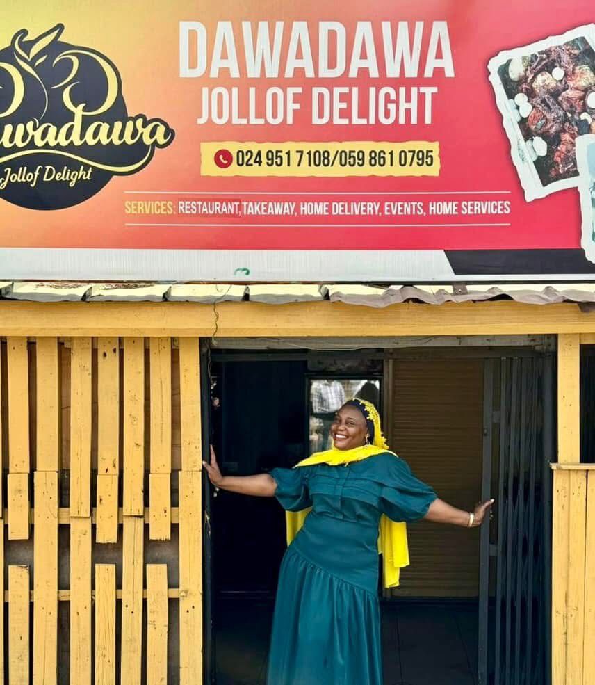 The idea sparked something in Rabiatu. With support and guidance from her family, she took the leap and founded Dawadawa Jollof Delight, a restaurant that blends healthy ingredients with the rich flavors of Ghanaian cuisine.