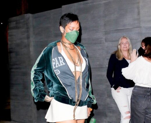 Rihanna took things in a different direction, one that allowed for a flash of skin and an on-trend mini-skirt.