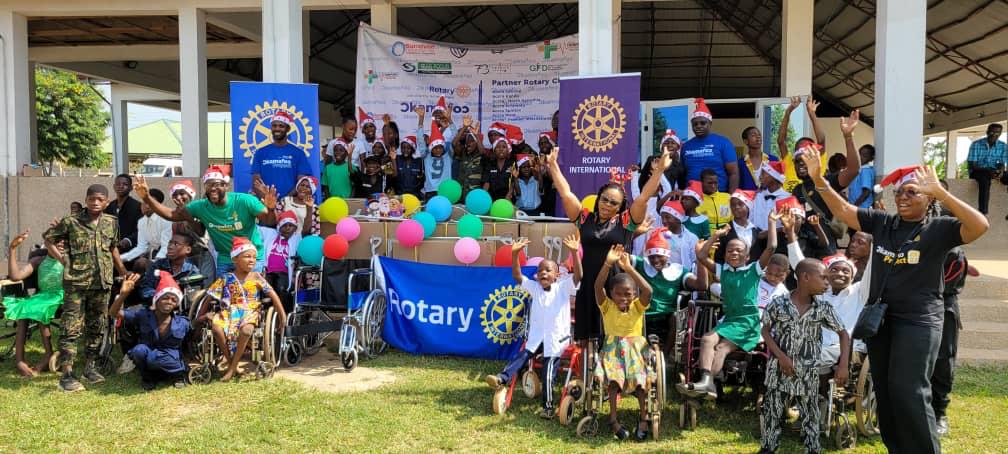 The Mephibosheth Training Centre in Gomoa, a facility for training children with cerebral palsy, received GH¢26000 worth of functional and mobility devices from the Rotary club of Accra-Teshie Nungua, the lead club of twelve of the Ɔkamafoɔ project.