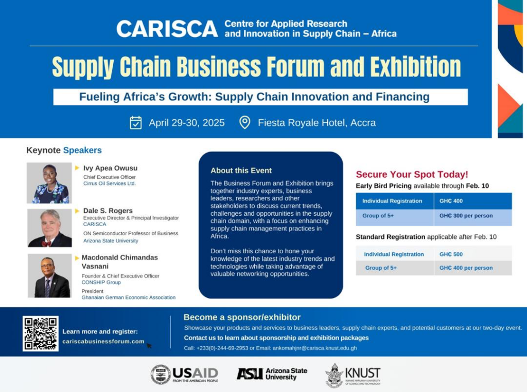 Business leaders and supply chain experts will gather April 29-30 at the Fiesta Royale Hotel in Accra, Ghana, for CARISCA’s second annual Supply Chain Business Forum and Exhibition.