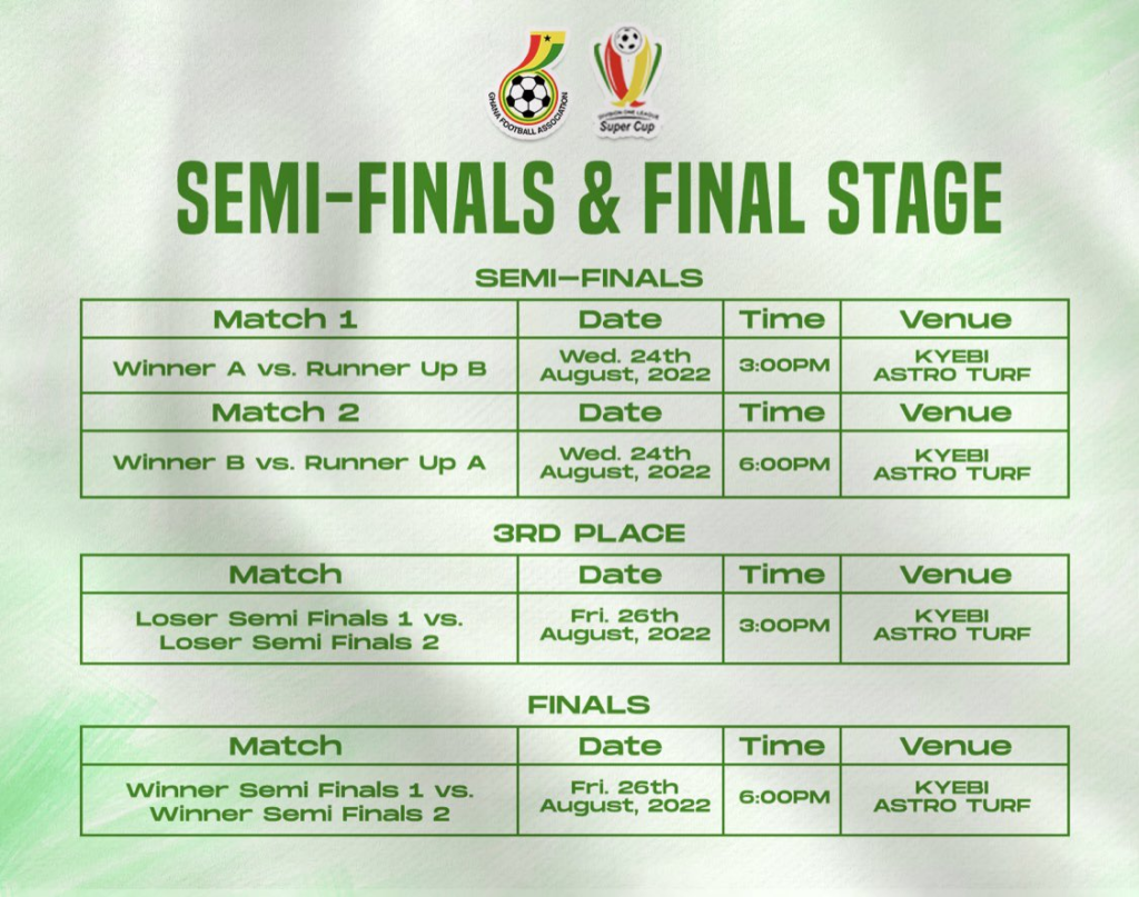 The second edition of the Division One League Super Cup will take place on Tuesday, August 16, 2022, at Kyebi in the Eastern Region.
