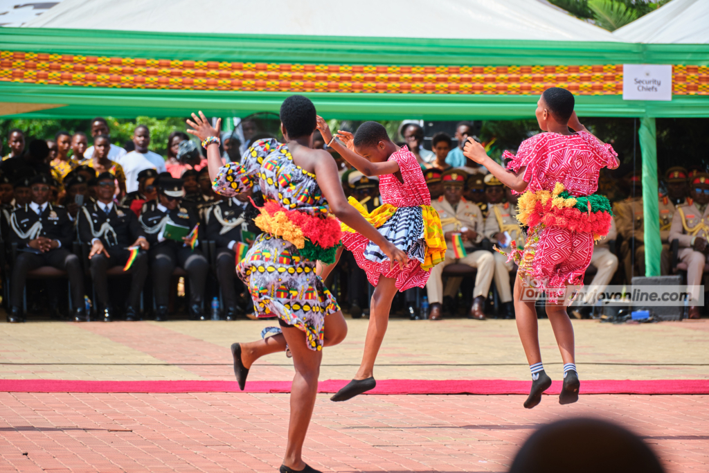The event featured a Military Guard of Honour, cultural performances by schoolchildren, and a poetry recital by a senior high school student.