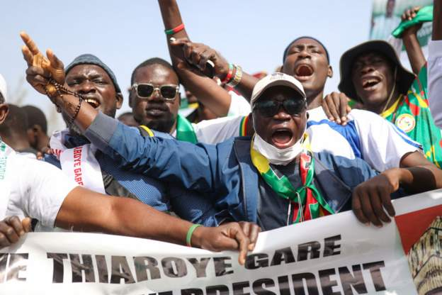 On Saturday, protesters from opposition parties and campaigning groups called the president a dictator and demanded the release from prison of opposition leader Ousmane Sonko.