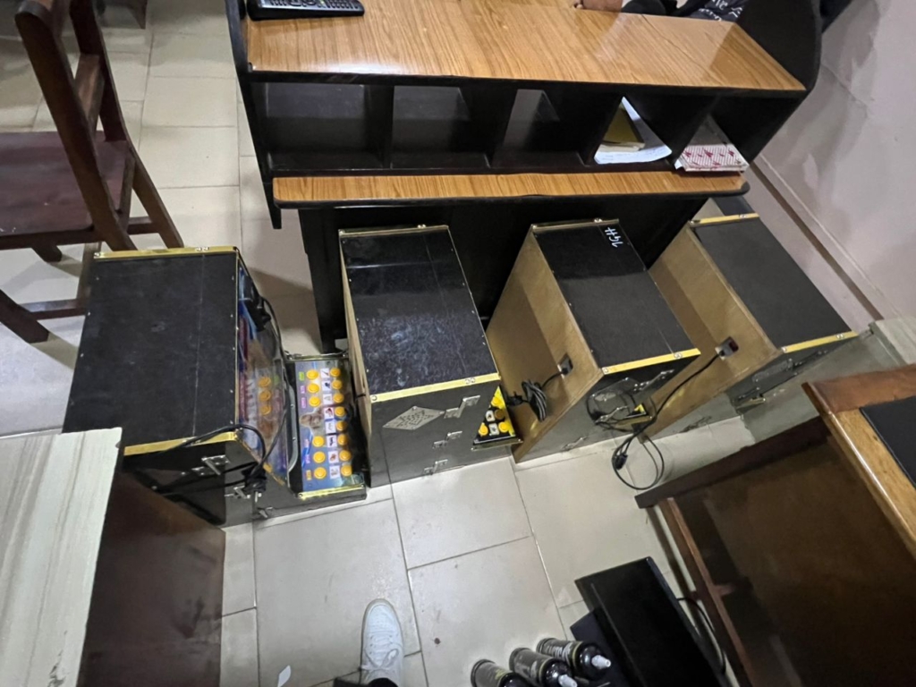 A search at a drinking spot operated by Janet Mensah resulted in the recovery of large quantities of cigarettes, tobacco products, lighters, and three jackpot gaming machines. An additional four jackpot machines were seized at Nkanfoa.