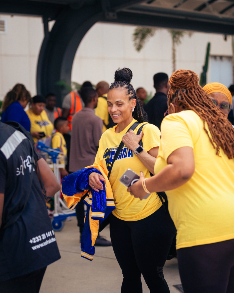 The delegation, under the leadership of International President Rasheeda S. Liberty, landed at Kotoka International Airport on Sunday, December 24, 2023, and received a warm traditional welcome featuring drumming and dancing.