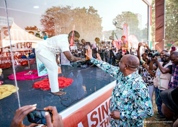 Independent presidential aspirant, Alan Kwadwo Kyerematen joined Ghanaians at the Akwaaba Village in Accra, to support to Afua Asantewaa who is currently attempting to break the Guinness World Record for the longest singing marathon by an individual.