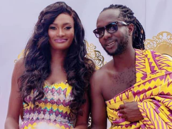 The couple were pictured dressed in their royal kente dress, palm locked as they smile to the camera.