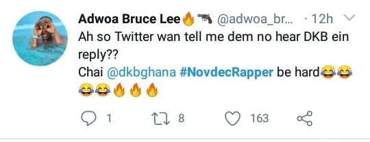 So the novdec no how many times mdk rep 😂😂#NovDecRapper dkb fool pass😂 pic.twitter.com/lWTYMj4yjL